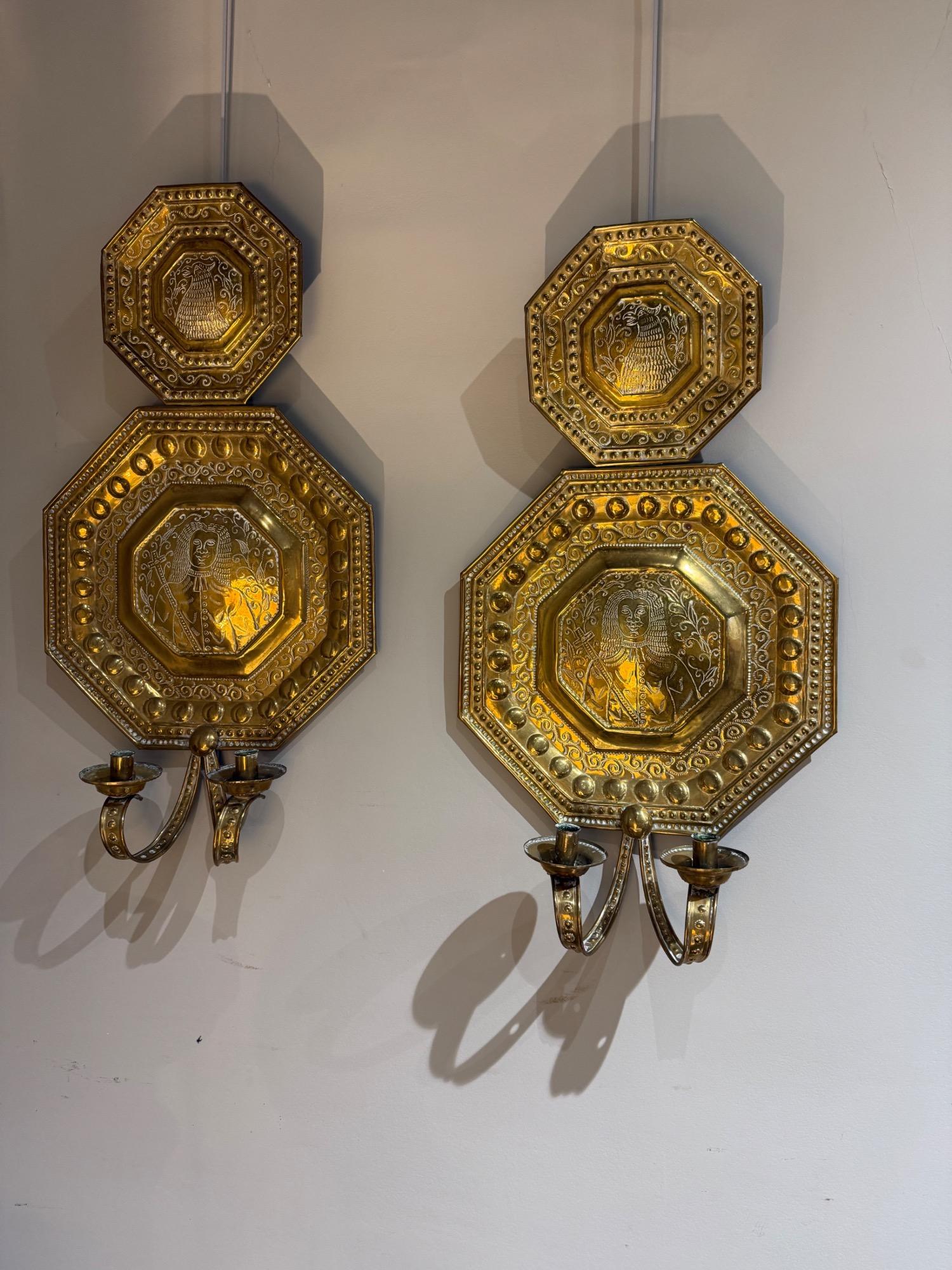 Pair of brass sconces Sweden 19th c