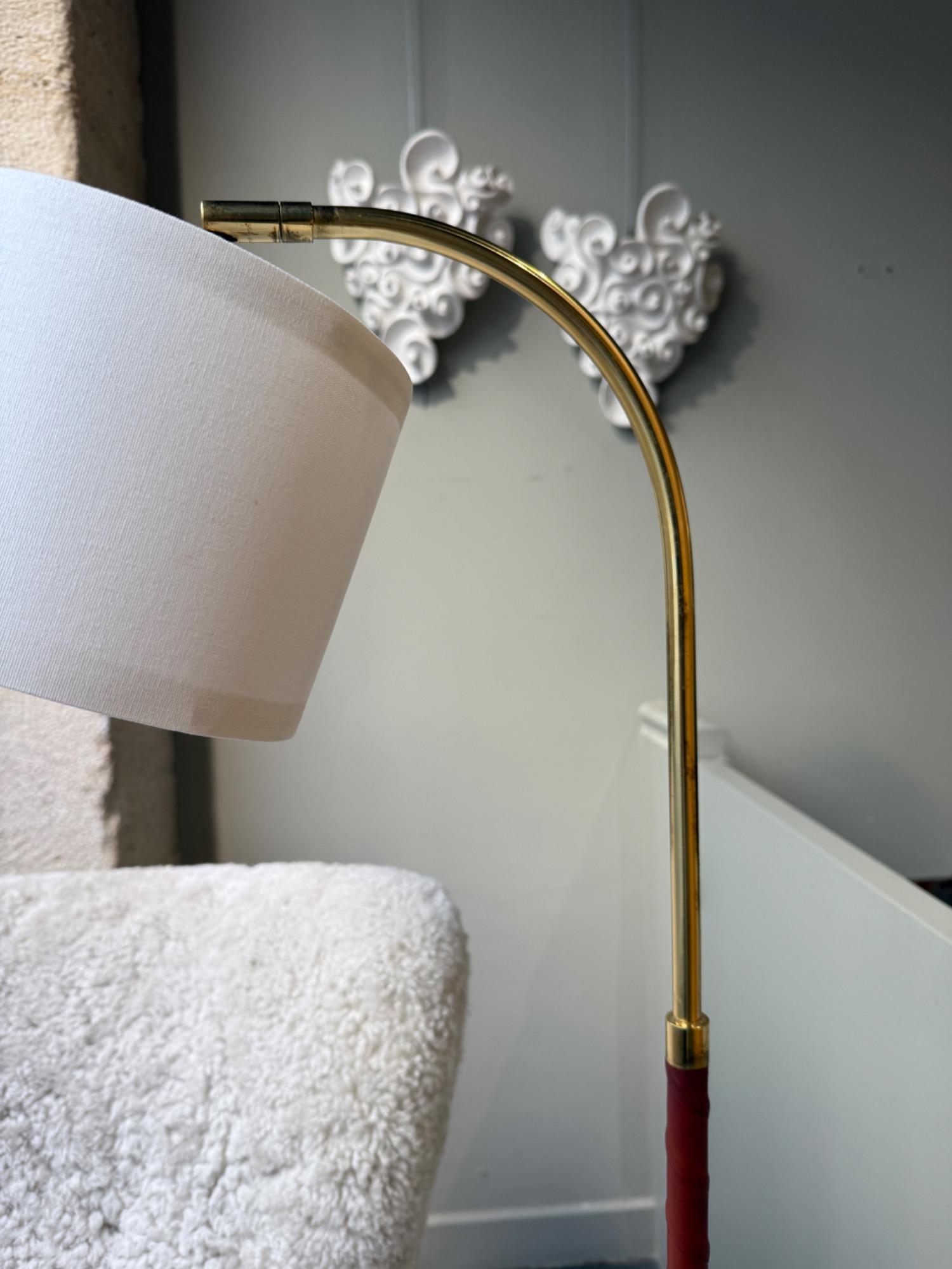 Pair of floor lamps brass and leather by Armaturhanverk circa 1970