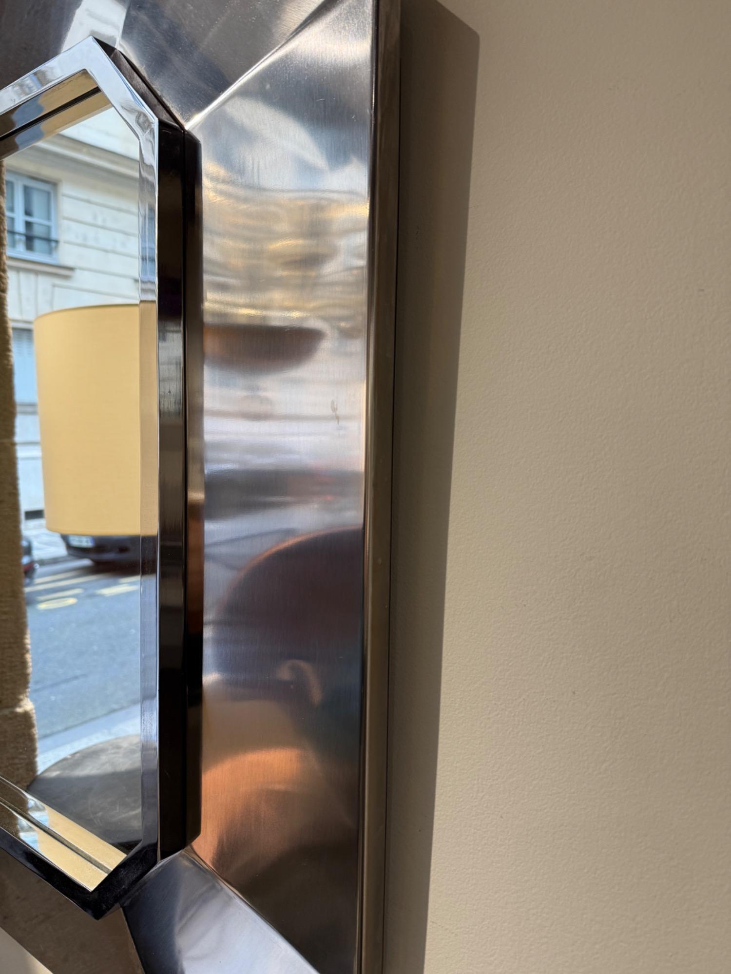 Steel mirror by Maison Jansen circa 1970